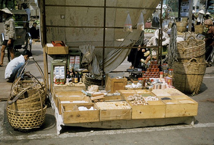 Sạp hàng bán mắm, gia vị… bên vỉa hè Chợ Lớn. Ảnh: Richard C. Harris.