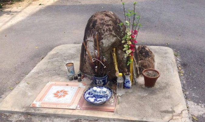 Hòn đá án ngự ngay giữa ngã ba đường với những lời đồn thổi chưa có cơ sở và chưa có một ai ҳάc minh.Hòn đá mang hồn của thần thánh