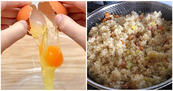 Như vậy, mỗi khi rang cơm mẹ nhớ trộn lòng đỏ vào cùng cơm trước còn lòng trắng bỏ vào sau nha.