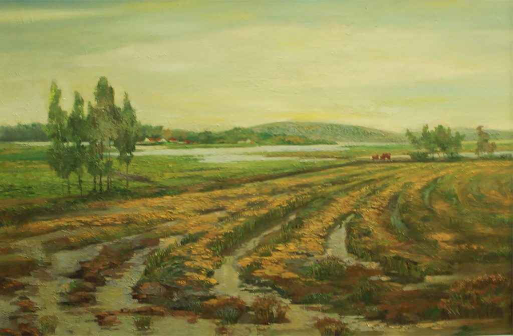Ruộng đồng, con đò, bến nước… hiện lên thanh bình qua nét cọ sơn dầu của họa sĩ Nguyễn Ngần và Nguyễn Ngọc Anh.