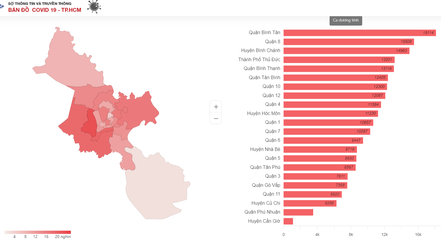 Q.Bình Tân là địa bàn có ca nhiễm Covid-19 nhiều nhất ở TP.HCM. Theo ông Lê Văn Thinh, Bí thư Quận ủy Bình Tân, số ca nhiễm được công bố chính thức đến 3.9 với tổng 18.114 ca. Đáng chú ý, qua test nhanh, phát hiện thêm khoảng 14.000 mẫu dương tính.