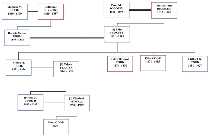 Gia phả của gia đình Cook, cho thấy Peter là cháu nội của anh trai Edith.