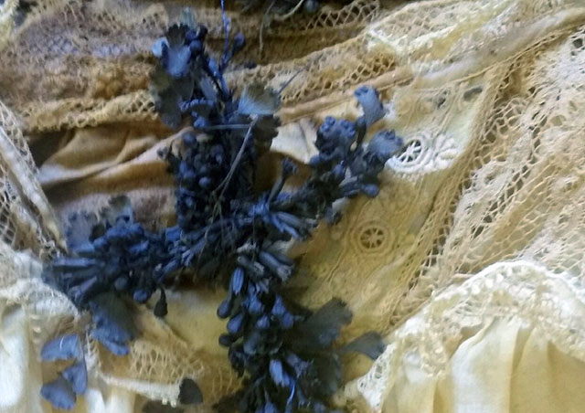 Bộ trang phục và cây thập giá kết bằng hoa vẫn còn nguyên vẹn.