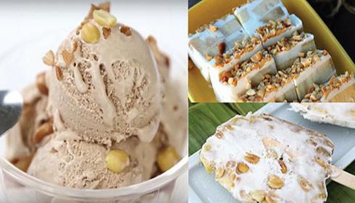 Món kem thích hợp nhất để làm ở nhà còn là kem chuối. Chuối tây cắt thành từng lát mỏng, dừa bào sợi, kem tươi, sữa tươi, sữa đặc có đường trộn với nhau theo tỷ lệ rồi dùng máy đánh trứng đánh cho đều lên. Cứ một lớp kem tươi, một lớp chuối đổ cho đầy khuôn, rắc dừa, lạc rang lên trên. Khi kem đủ độ lạnh, đông lại là có thể ăn được.
