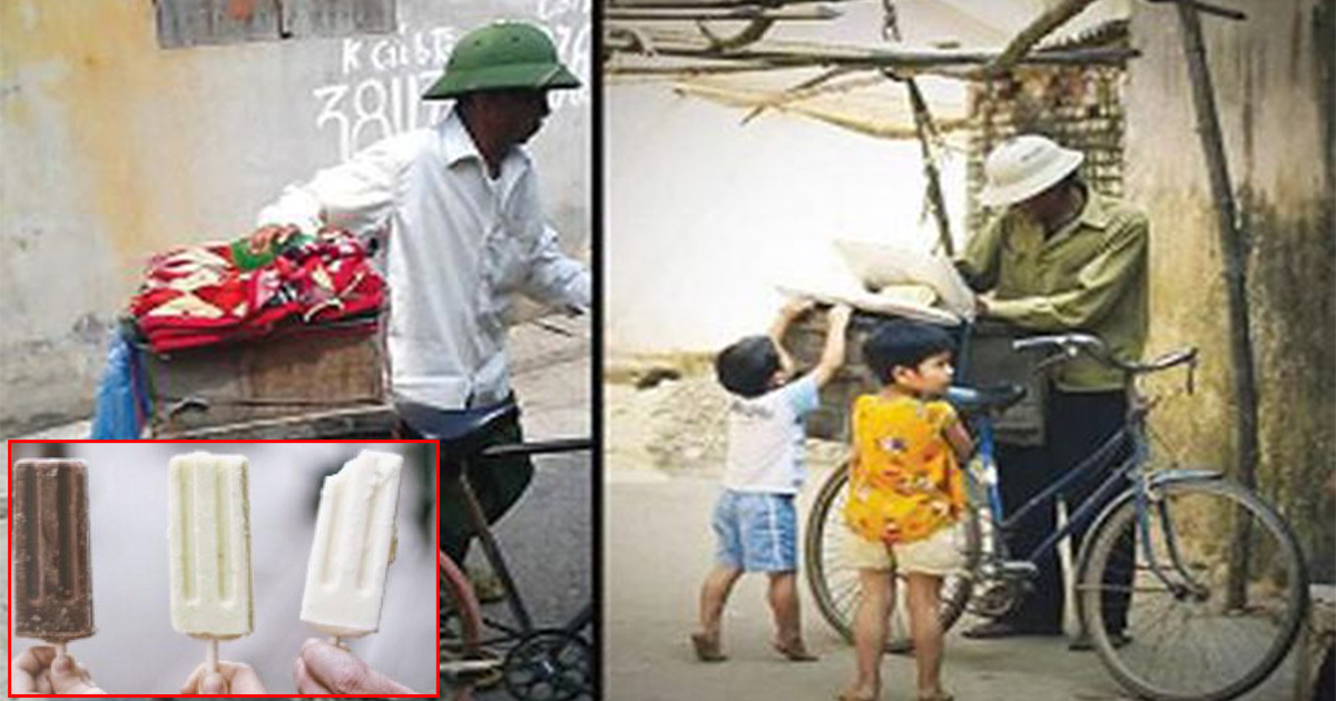 Chú bán kem mở chiếc thùng gỗ, lật vài lớp vải, rút ra que kem mát lạnh như một thứ quyền năng tuyệt vời với đám trẻ ngày ấy. Hầu như chỉ có một loại kem, chẳng hề có lựa chọn nhiều đến hoa mắt như bây giờ. Có thể là kem đậu xanh, nhưng chẳng thấy vị đậu xanh đâu mà chỉ thấy toàn đá và ngọt kiểu đường hóa học. Nhưng kệ, đó vẫn là thứ ngon tuyệt vời của mỗi đứa trẻ giữa trưa hè. Mặc cho bố mẹ có gào thét, mắng mỏ, cấm đoán không được ăn kem vì toàn đường hóa học.