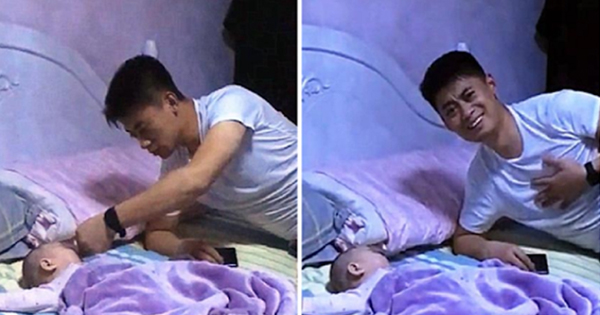 Một hôm chồng đi làm về sớm, khi vào nhà, anh đã hí hửng đi tắm rửa sạch sẽ để vào chơi với con, thế nhưng lúc này em bé đã ngủ mất rồi. Thấy chồng ở trong phòng với con khá lâu mặc dù bé đã ngủ, người vợ tò mò mới đứng bên ngoài thử quan sát xem anh làm gì, ai ngờ cứ chốc chốc khoảng 5 phút, anh lại đưa tay lên mũi con như muốn kiểm tra xem bé còn thở hay không.