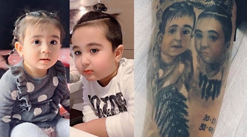 Thích thú, tự hào trước những đứa con kháu khỉnh, thông minh của mình, ông xã chị Ái Phi thậm chí đã xăm ảnh các con trên tay. Đây như một cách anh lưu giữ kỷ niệm thời ấu thơ của hai bé và cũng thể hiện tình yêu dành cho các con.