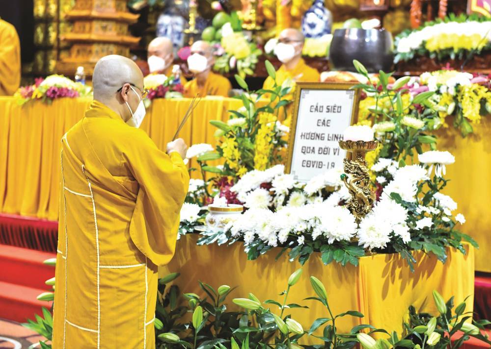 Hoạt động nổi bật nhất trong Đại lễ Vu Lan năm nay là tổ chức cầu siêu cho các hương linh không may ra đi vì Covid-19. (Ảnh: Báo Quảng Nam)