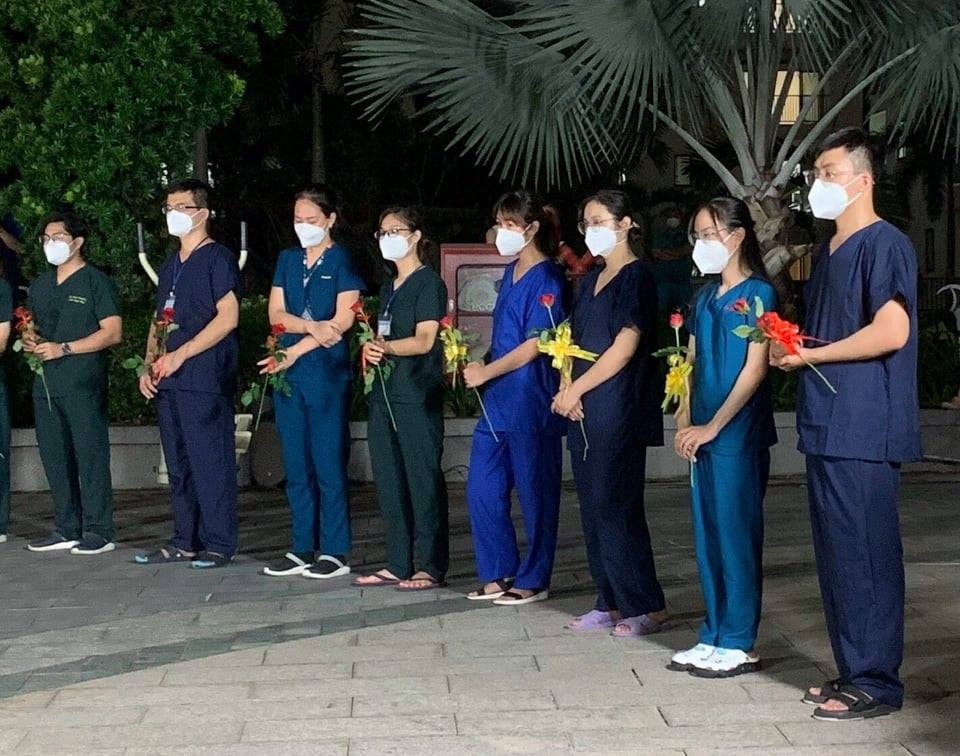 Mỗi bó hoa trên tay các y bác sĩ đều thể hiện những lời cầu nguyện tốt lành. (Ảnh: Truyền hình An Viên)