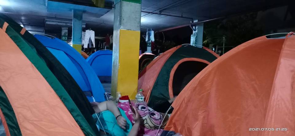 Chị nói tiếp: “Bên trong ba tầng nhà xe bữa giờ chưa thấy phun khử khuẩn, công nhân chúng tôi tự lo cho bản thân, mua cồn ở ngoài mang vào tự xịt xung quanh lều mình ngủ. Nói chung ở đây ai cũng có thể là F0 hoặc F1 bất cứ lúc nào với tình hình cách ly tập trung rồi ăn uống vệ sinh chung như thế này. Hiện tại tôi là F2 nhưng ngày mai có thể F0”.