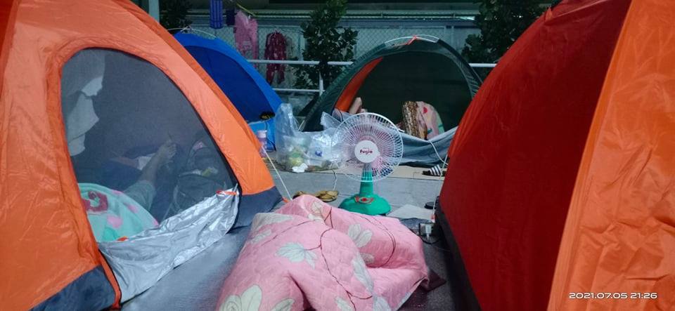 Nhiều công nhân phải ra ngoài lều nằm ngủ vì quá nóng