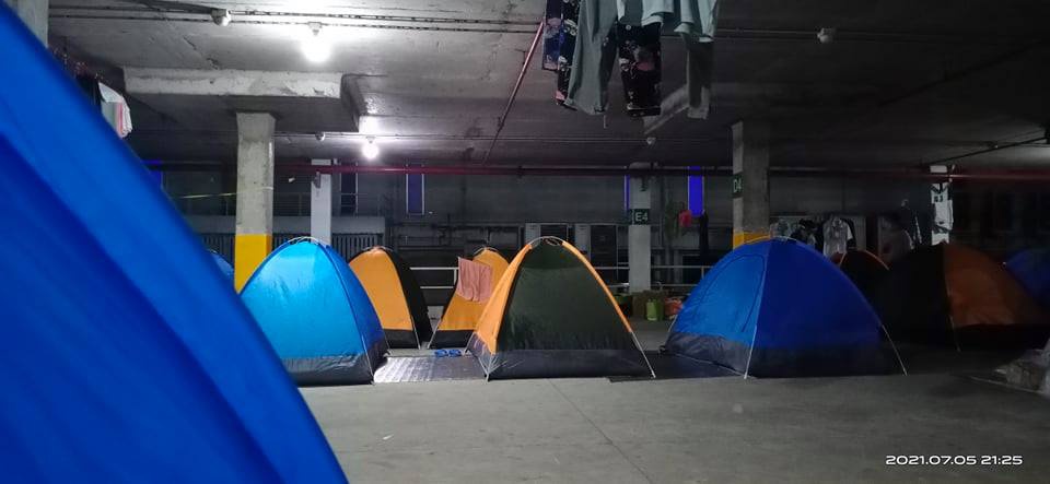 Chị nói tiếp: “Bên trong ba tầng nhà xe bữa giờ chưa thấy phun khử khuẩn, công nhân chúng tôi tự lo cho bản thân, mua cồn ở ngoài mang vào tự xịt xung quanh lều mình ngủ. Nói chung ở đây ai cũng có thể là F0 hoặc F1 bất cứ lúc nào với tình hình cách ly tập trung rồi ăn uống vệ sinh chung như thế này. Hiện tại tôi là F2 nhưng ngày mai có thể F0”.
