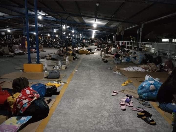 Gần 1 tuần qua, kể từ khi phát hiện ca bệnh Covid-19 đầu tiên và công ty bị phong tỏa, nhiều công nhân ở đây phải ăn ngủ, sinh hoạt chung nhà tắm, nhà vệ sinh, tối đến thì trải bìa các tông để ngủ la liệt “màn trời chiếu đất”. Sau đó, nhà xe 3 lầu của công ty được sử dụng cho công nhân ngủ nghỉ, tất cả xe được dời ra bên ngoài sân.