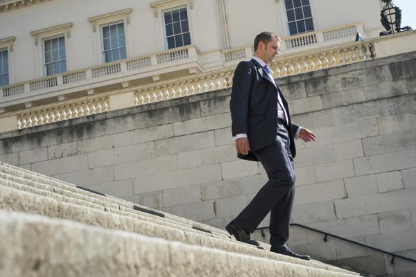 Tôi dừng ở một cột đèn đối diện bệnh viện New York thì nhìn thấy một người đàn ông ăn mặc chỉnh tề đang bước xuống những bậc cầu thang. Ông ấy vẫy taxi của tôi.