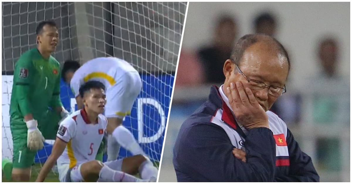 Giây phút thầy Park thất thần khi tiếng còi kết thúc trận vang lên. (Ảnh chụp màn hình)