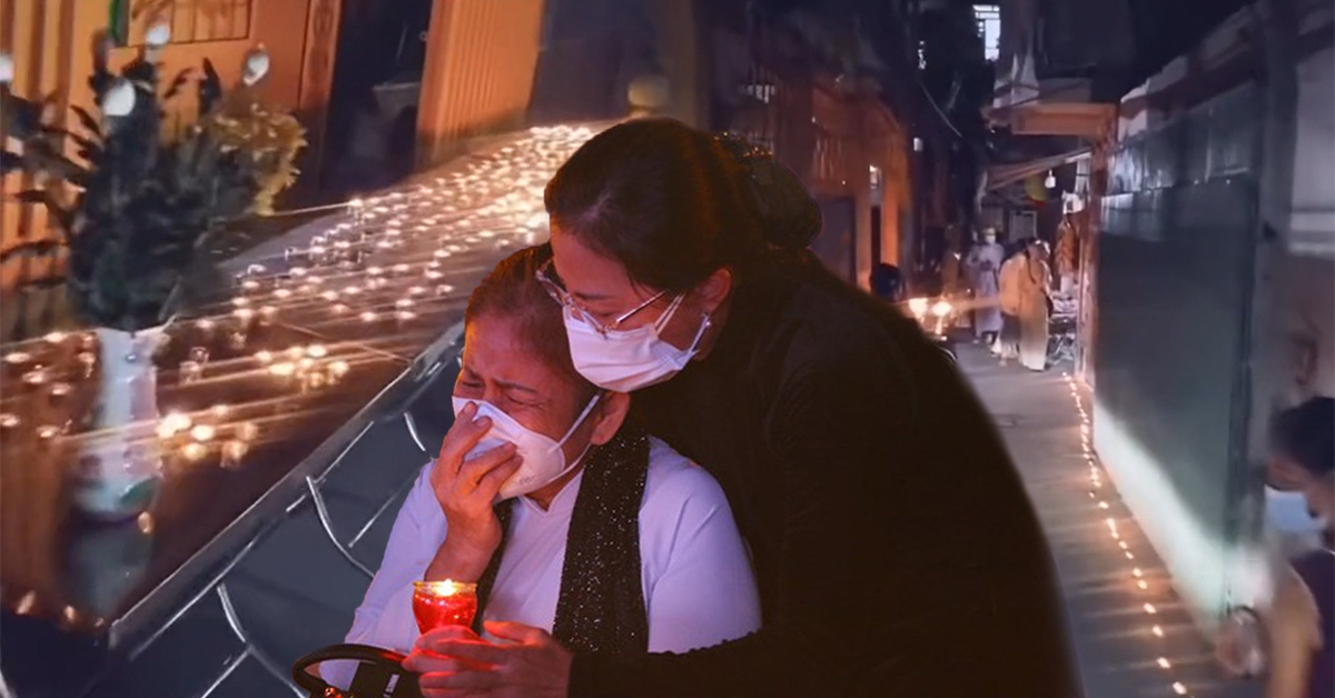 Đại dịch Covid-19 lấy đi sinh mạng của nhiều người trong một con hẻm nhỏ. Tối 19/11 những người ở lại cùng nhau thắp nến, cầu nguyện cho vong linh đã khuất.