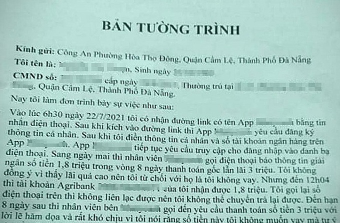 Một số người trước khi quyết định vay tiền qua app không tìm hiểu kỹ thông tin điều khoản, dịch vụ, các quy định về lãi, phí và hạn mức trả nợ nên gặp nhiều rắc rối. Trường hợp bị lừa đảo hoặc đe dọa, công dân có thể làm đơn tố cáo gửi cơ quan công an kèm các tài liệu, chứng cứ chứng minh.