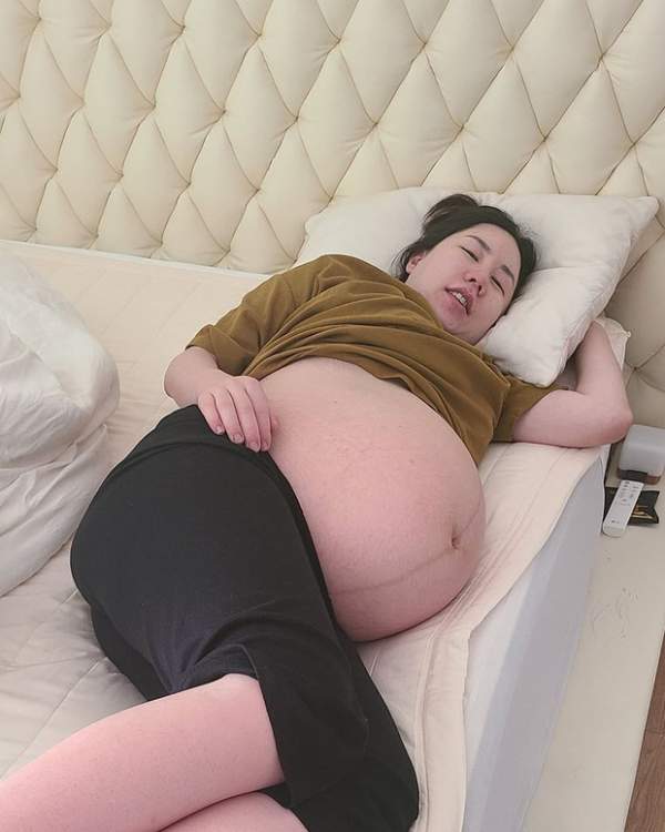 Trên Instagram, Hwang Shin Young chia sẻ mình đã mang bầu tới tuần 34: “Bụng tôi như muốn vỡ tung, cảm giác khó lòng trụ qua nổi tuần này. Tôi không thể thở bình thường và huyết áp cũng lên xuống thất thường”. Người đẹp cho biết, giờ đây cân nặng của cô đã đạt mốc 104kg, bụng có rất nhiều vết rạn.