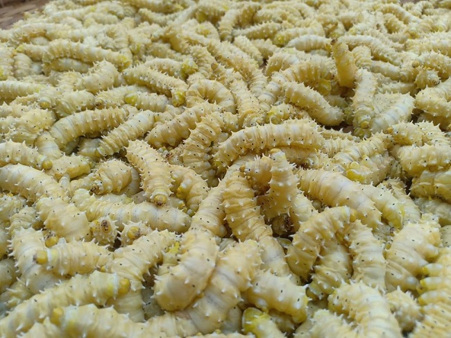 Anh Phùng Quang Tuấn (trú tại xã Điền Quang, huyện Bá Thước, Thanh Hóa) vừa tận dụng lá sắn để nuôi tằm lấy thịt vừa thu mua tằm của các hộ nông dân khác phân phối cho các cửa hàng thực phẩm. “Mỗi lứa nhà tôi nuôi từ 0,2-0,3kg trứng, cho thu hoạch từ 300-400kg tằm thương phẩm. Thời gian nuôi ngắn lại có thể tận dụng lá sắn sẵn có của gia đình nên thu nhập cũng ổn.