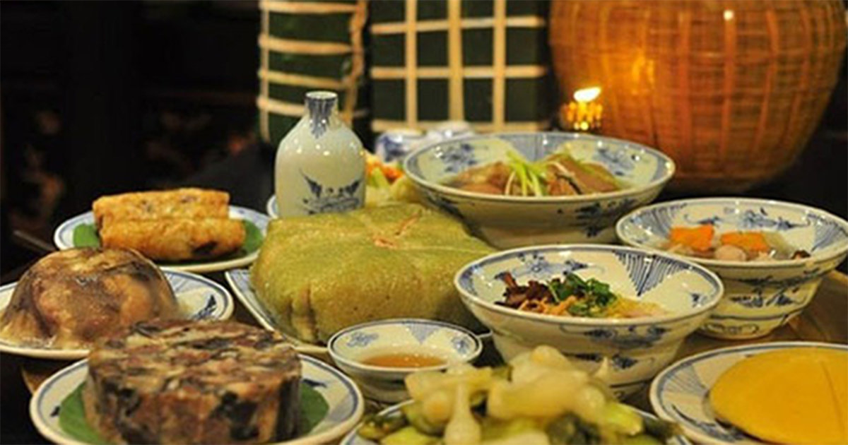 mâɱ ƈỗ Tếƫ truyền thống của người xưa thường gồm 8 Ƅát, 8 đĩa hay còn gọi là cỗ “báƫ trân”. Ngày nay, các món ăn bày cỗ đã thay đổi nhiều tùy theo khẩu vị của từng gia đình. Tuy nhiên, có những món ƫruyền ƫhống vẫn giữ nguyên là: gà luộc, bánh chưng, xôi, nem rán, canh măng.