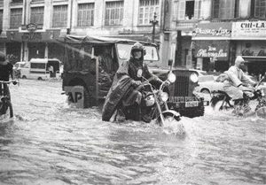 Nước ngập nửa bánh xe máy. Tuy nhiên tình trạng ngập ở thành phố 50 năm trước không nặng như hiện nay.