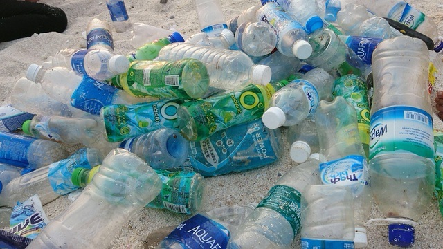 Hàng loạt chai nhựa du khách thải ra và do sóng biển cuốn vào hòn đảo này mỗi ngày.