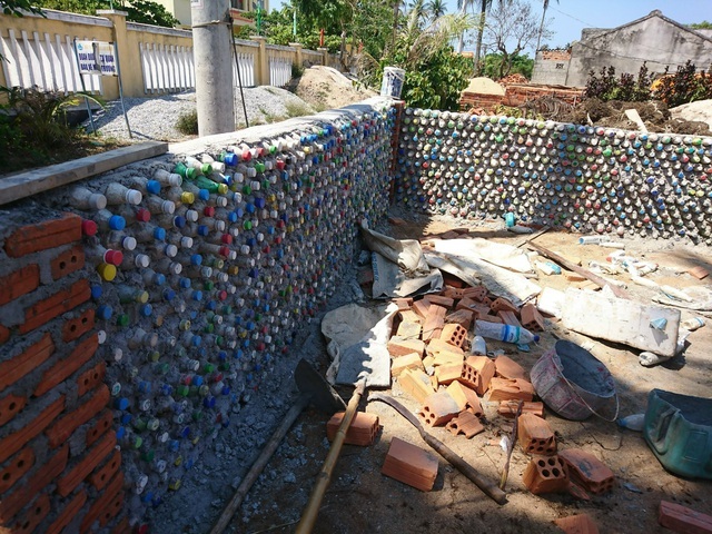 Bức tường nhà xây dựng từ 6000 chai nhựa.