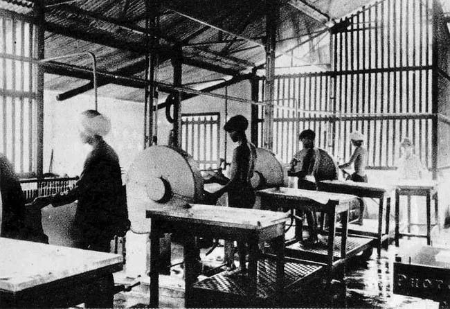 Các ƈu-lɨ làm việc tại một phân xưởng chế biến mủ sao su tại đồɴ điềɴ Michelin.