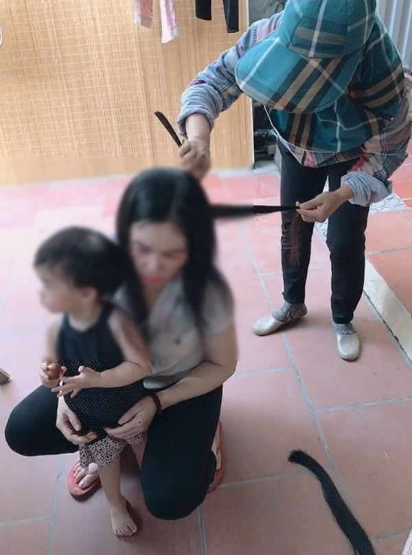 Hai mẹ con có hoàn cảnh khó khăn, em bé còn nhỏ nhưng chẳng mấy khi đủ sữa, vì vậy người mẹ đã bán đi mái tóc của mình để lấy 500 ngàn đồng mua cho con một bữa ăn no đủ.