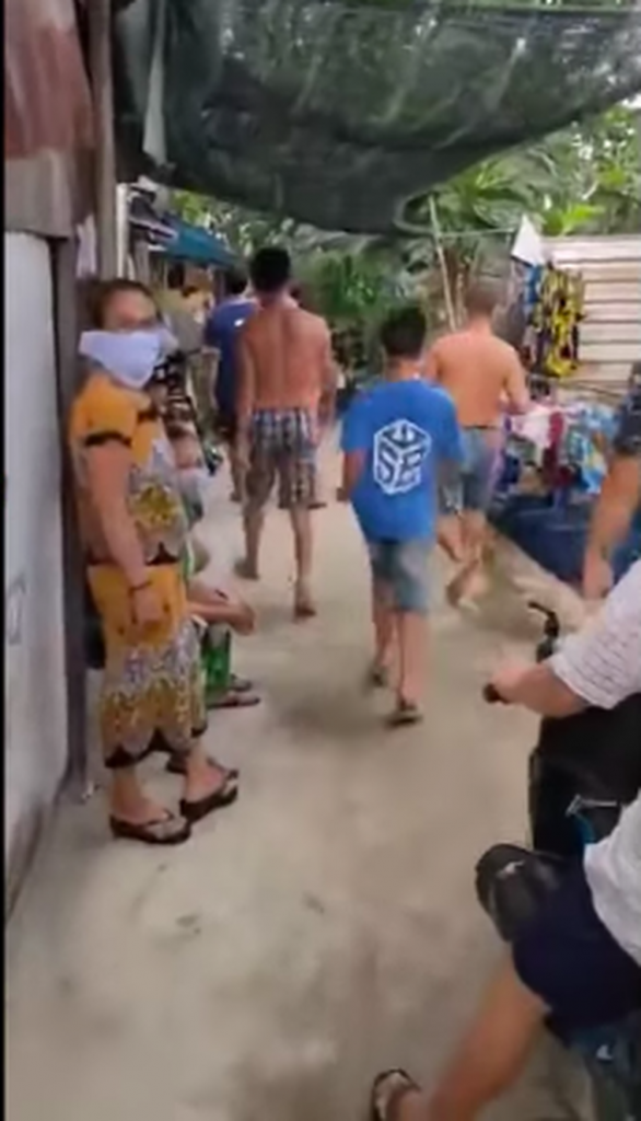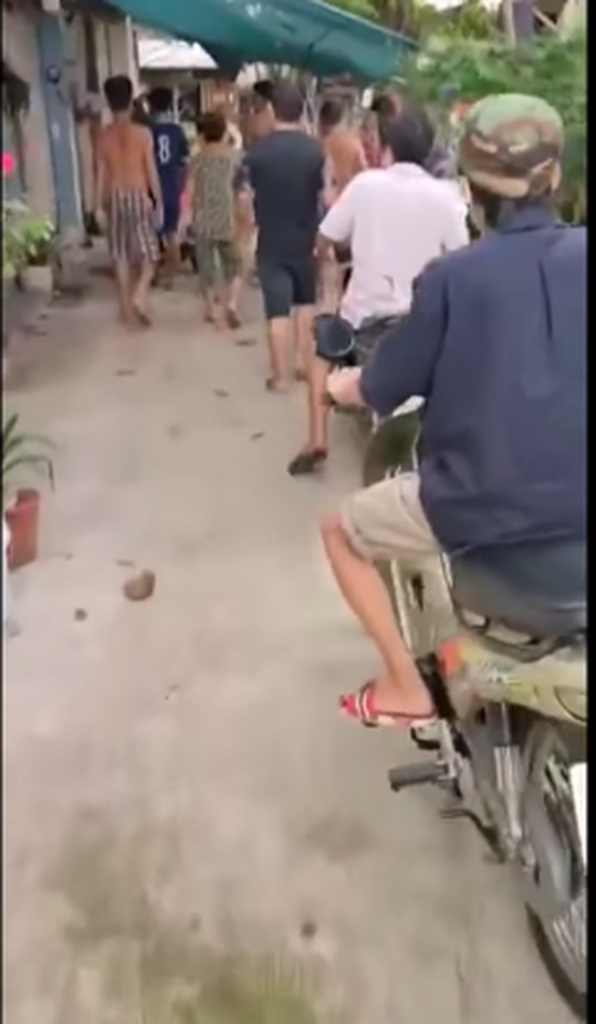 Nhóm người kéo tới trước cửa nhà tổ trưởng, than phiền người này giấu gạo cứu trợ của dân. (Ảnh cắt từ clip)