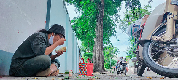 Hình ảnh giản dị của anh Lâm ở ngoài đường.