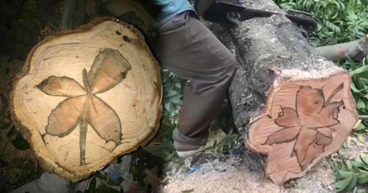 Mới đây, một đoạn clip đã ghi lại hình ảnh người đàn ông đốn được cây sấu vô cùng lạ. Khi xẻ phần thân cây ra thì bên trong không phải vân gỗ như bình thường mà lại có hình bông hoa.