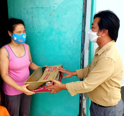 Một khách thuê trọ được nhận quà. (Ảnh: Tuổi Trẻ Online)