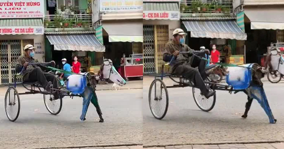 Chiếc xe ngựa đặc biệt đã khiến nhiều người thích thú trước sự sáng tạo giữa thời buổi vật giá leo thang vì xăng tăng. Ảnh cắt từ clip