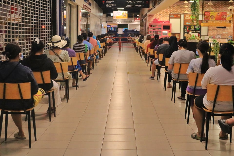 Tại Mega Market An Phú (Q.2, TP.HCM) từ 7 giờ đã đóng cửa vì số lượng khách quá lớn. Một người dân đi chợ cho biết bình thường siêu thị mở cửa vào lúc 7 giờ nhưng hôm nay từ 6 giờ đã có người đến xếp hàng trước cổng. Sau khi cho một lượng khách vào xếp hàng rồng rắn bên trong. Đến 7 giờ sáng, siêu thị thông báo không nhận thêm khách hàng vì không đủ hàng cung ứng, yêu cầu khách hàng quay lại vào đầu giờ chiều.