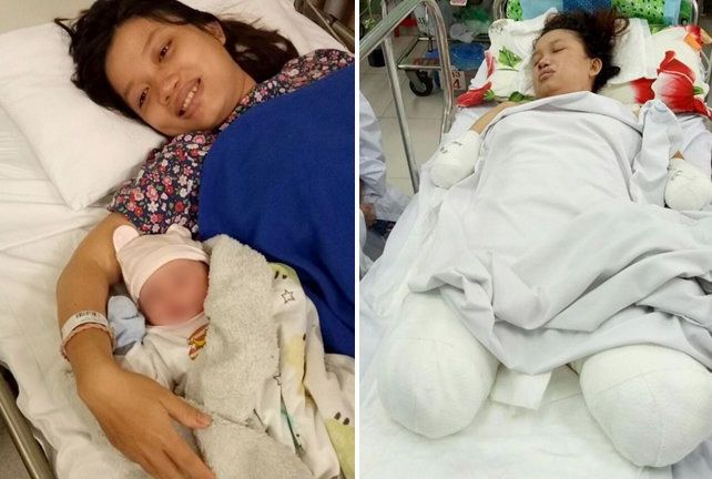 Việc giữ được mạng sống đã là điều may mắn đối với bà mẹ trẻ này. Ảnh: VnExpress