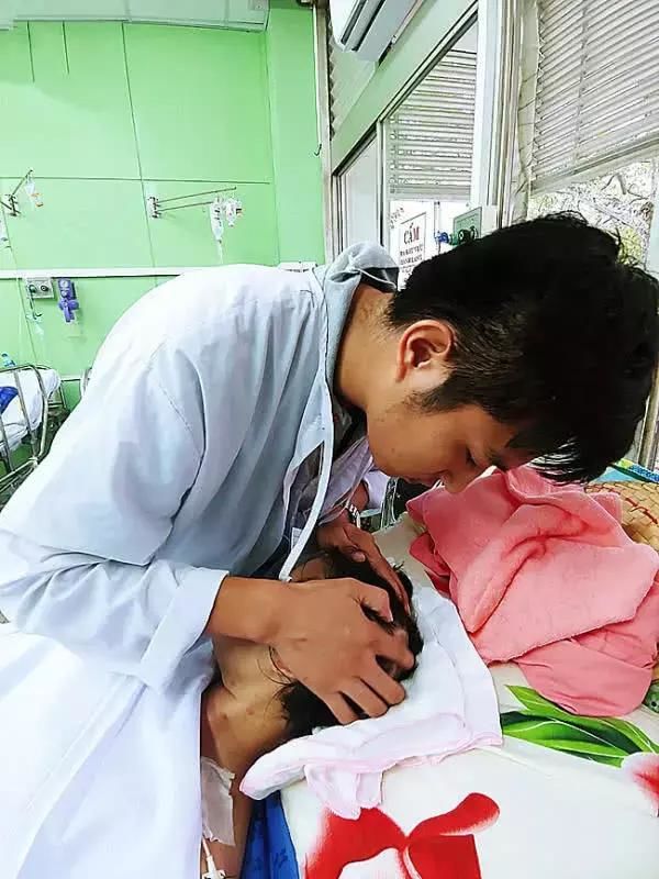 Anh Tài cẩn thận săn sóc vợ. Ảnh: VnExpress