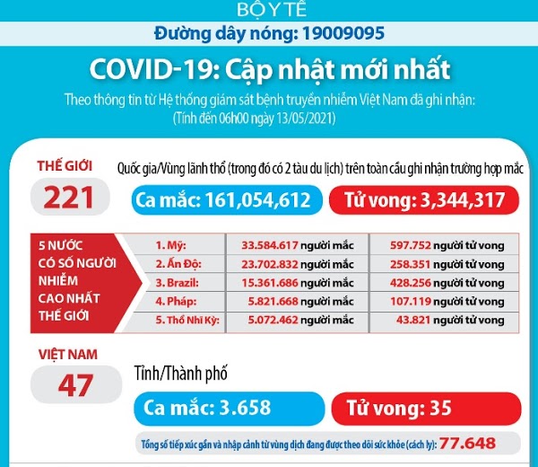 Số liệu cập nhật mới nhất tình hình dịc.h co.vid 19 đến 6h ngày 13/5