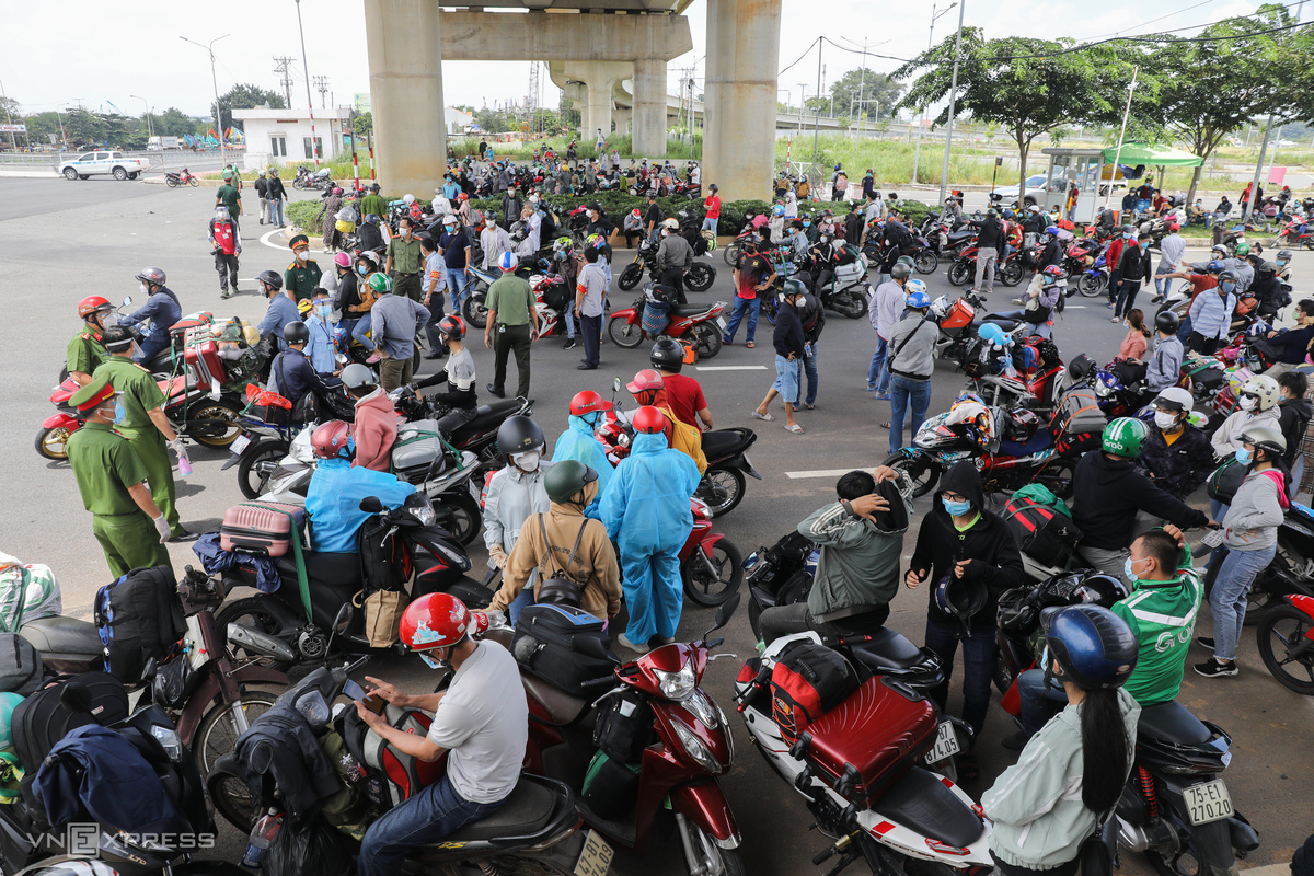Thượng tá Nguyễn Văn Bình, Phó phòng CSGT TP HCM cho biết, nhiều đội CSGT phối hợp Công an TP Thủ Đức và TP Dĩ An vận động người dân tập trung ở quốc lộ 1, quận Bình Tân và dưới chân cầu vượt Linh Xuân quay về nơi ở.