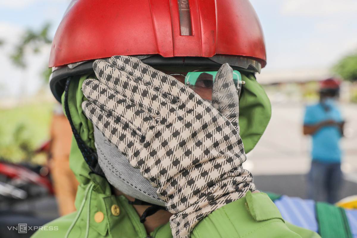 Ngồi giữa trưa nắng trên thành của cổng vào bến xe, Hồng Mến cho biết đi từ 6h sáng, đến đây cô bị chặn lại. “Em nghe trong hội đồng hương Hà Tĩnh báo hôm nay cùng nhau chạy xe máy về quê nên cũng đi theo. Ba tháng nay em không có tiền, ráng cầm cự mà giờ không lo nổi nữa rồi”, cô gái 25 tuổi nói.