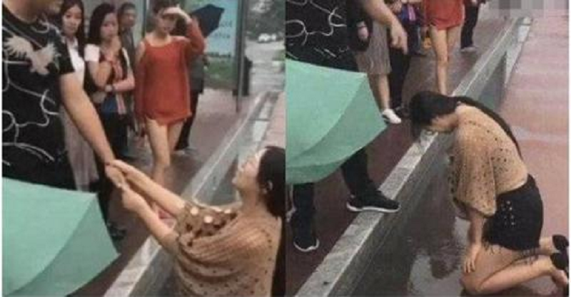 Những hình ảnh về cô gái quỳ xuống cầu xin bạn trai đừng chia tay được CĐM xứ Trung chia sẻ.