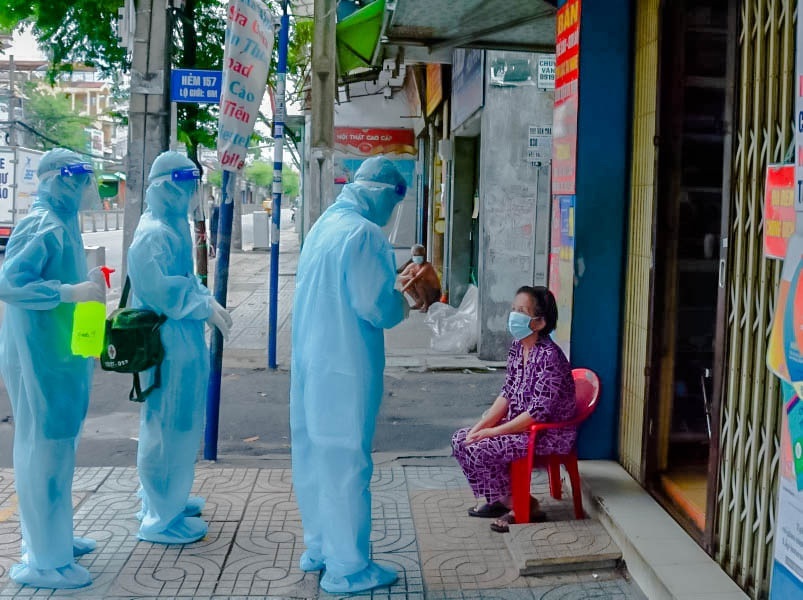 Lực lượng quân y đến tận nhà F0 hỏi thăm. (Ảnh: Thanh Niên)