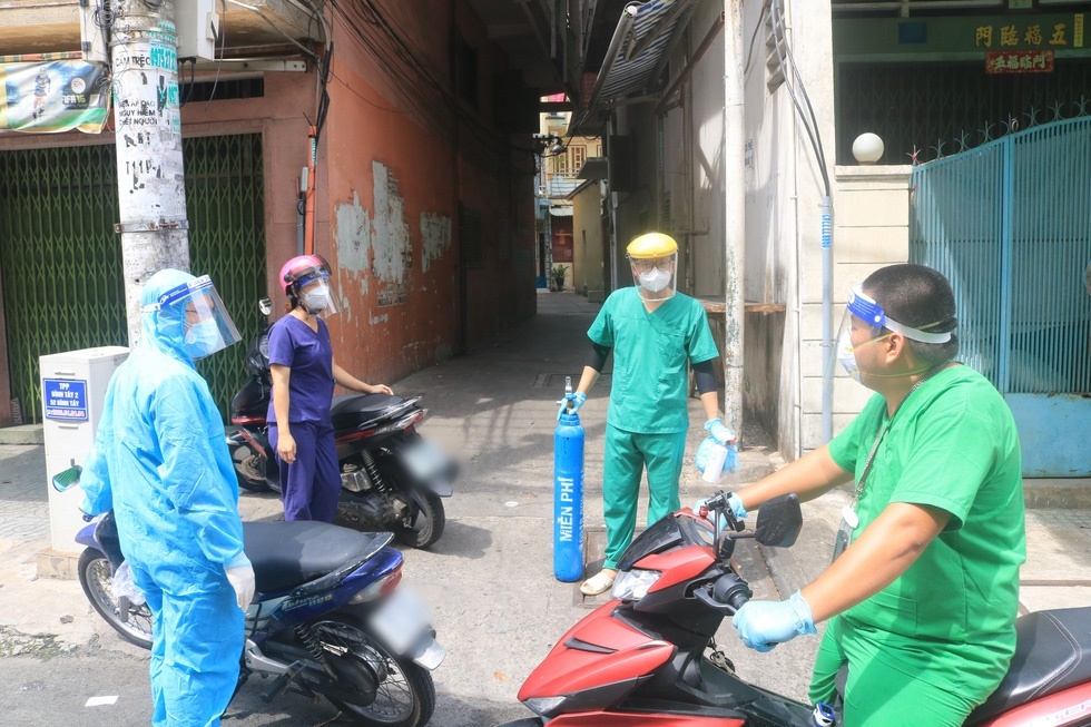 Anh Tân vội vàng mặc đồ bảo hộ và ôm theo bình oxy, cùng một sinh viên năm thứ 6 của Học viện Y dược học cổ truyền Việt Nam phóng xe máy đến địa chỉ trên. Sau 10 phút cố gắng len lỏi qua những con hẻm nhỏ, 2 người đã đến nơi. Lúc này, F0 đang lên cơn khó thở, trong nhà còn 6/7 người khác cũng nhiễm bệnh.