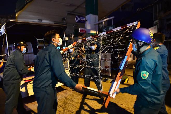 Lực lượng chức năng khoanh vùng nơi có ca dư.ơng t.ính C.OVID-19 – Ảnh: CTV