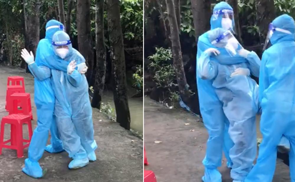 Ngoài những khoảnh khắc vất vả hay khi mướt mải mồ hôi, các nhân viên y tế trong lực lượng tuyến đầu cũng có nhiều tình huống cực kỳ dễ thương, hài hước khi đi chống dịch. Và đương nhiên, những video này luôn nhận về rất nhiều sự quan tâm, thích thú từ dân mạng. Đoạn video dưới đây là một ví dụ.