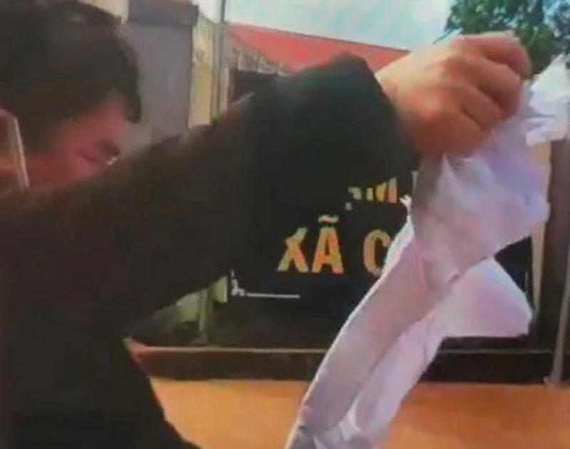 Cũng trong clip, người đàn ông cho rằng mình rất yêu màu áo blouse trắng nhưng “một năm quần quật chống dịch lại bị đánh giá không hoàn thành nhiệm vụ” nên quá bức xúc. Cuối clip, người đàn ông đã xé áo blouse trắng ném về phía cổng trụ sở Trạm y tế xã Cư Né.