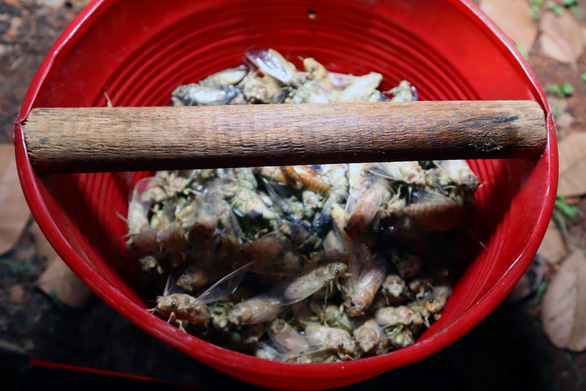 Người dân bắt ve sầu về làm món ăn – Ảnh: B.A.