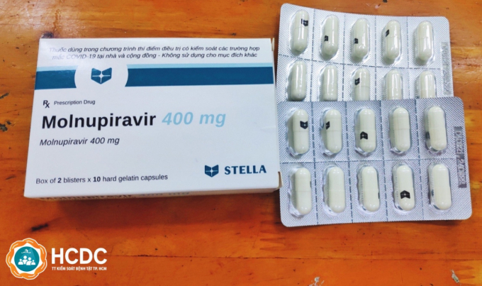 Thuốc kháng virus molnupiravir được cấp phát miễn phí cho F0 nhẹ để điều trị Covid-19. Ảnh: HCDC