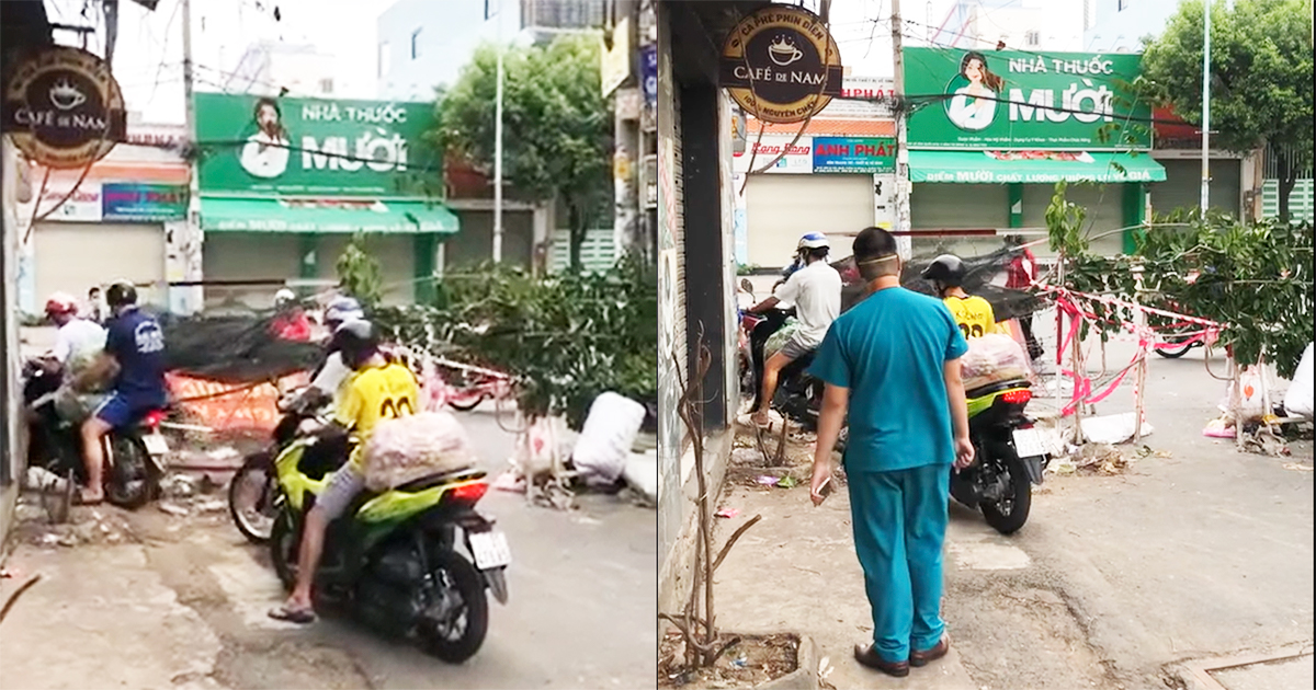 Lúc này, mặc dù có rất nhiều nhân viên y tế ở đó nhưng nhóm người này vẫn bất chấp tháo rào chắn phóng xe máy qua. Một nam nhân viên y tế chạy theo giọng khản đặc như bật khóc:” Anh chị kỳ quá! em đã cách ly rồi mà các anh chị làm gì vậy, biết bao giờ mới hết dịch đây”. Sau đó, nhiều người khác cũng cất giọng năn nỉ: “Anh chị quay lại đi anh chị ơi”.