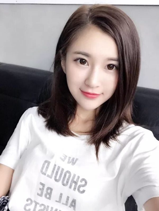 #6 – Tóc cắt ngang vai đơn giản nhuộm hơi nâu trẻ trung